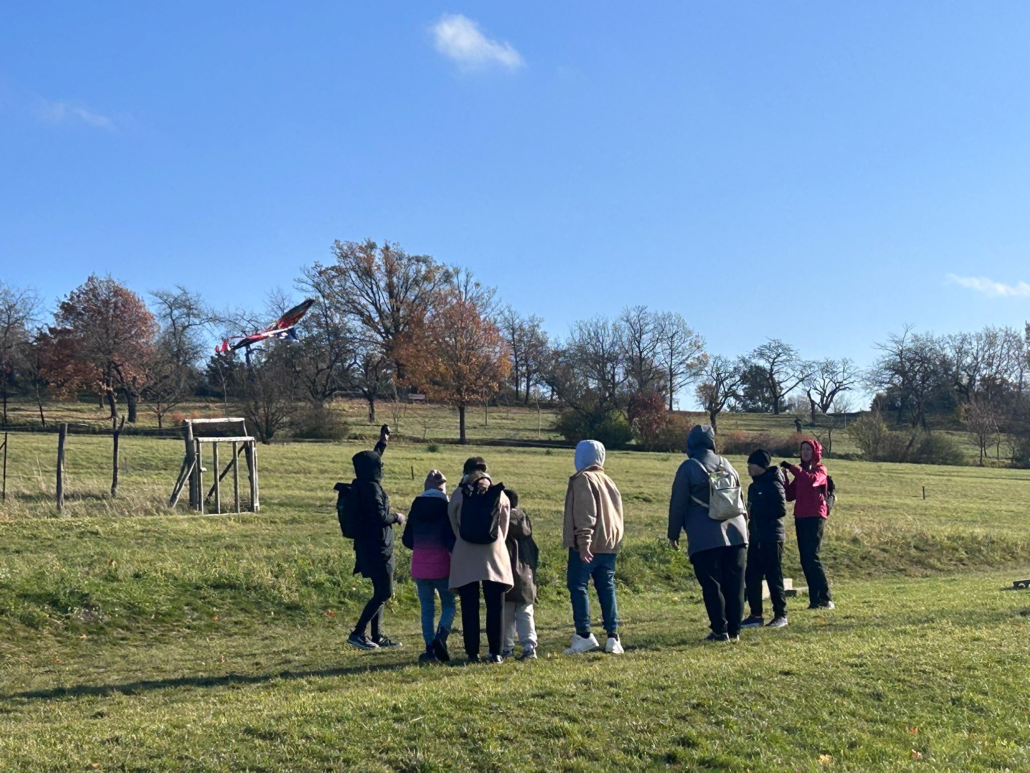 Po společném létání následovala procházka lesem zpět ke škole. Cestou žáci pozorovali podzimní proměny přírody, sbírali listy a povídali si o tom, jak se stromy připravují na zimu.